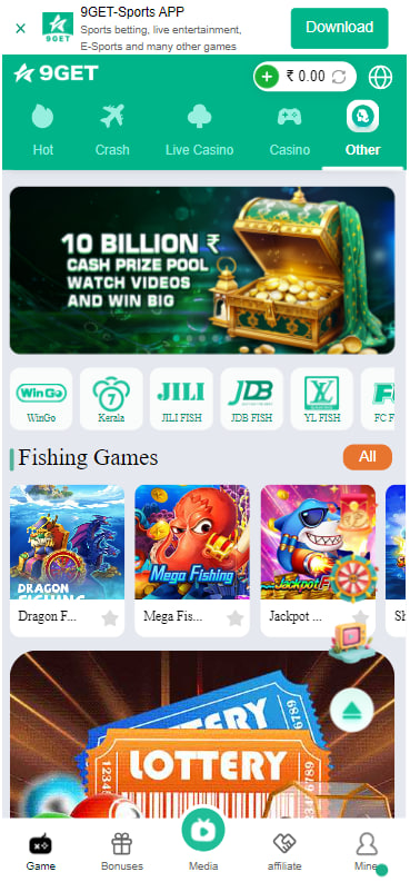 Visit the 9Get India Casino website. Click the “Deposit” button on the homepage.