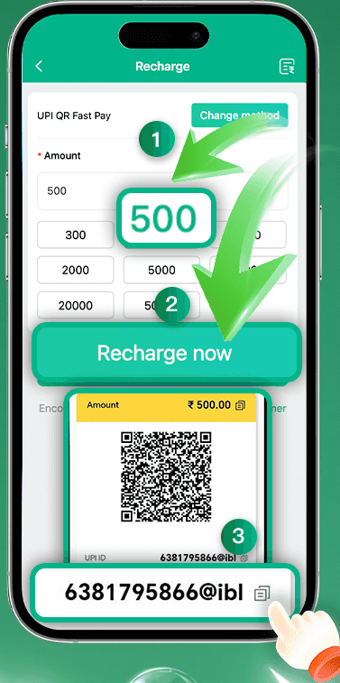 Choose a payment method and enter the amount you want to deposit into 9Get. Make sure the amount is correct. After entering the amount, click “Recharge Now.” You’ll see a QR code or UPI ID to finish the transaction.